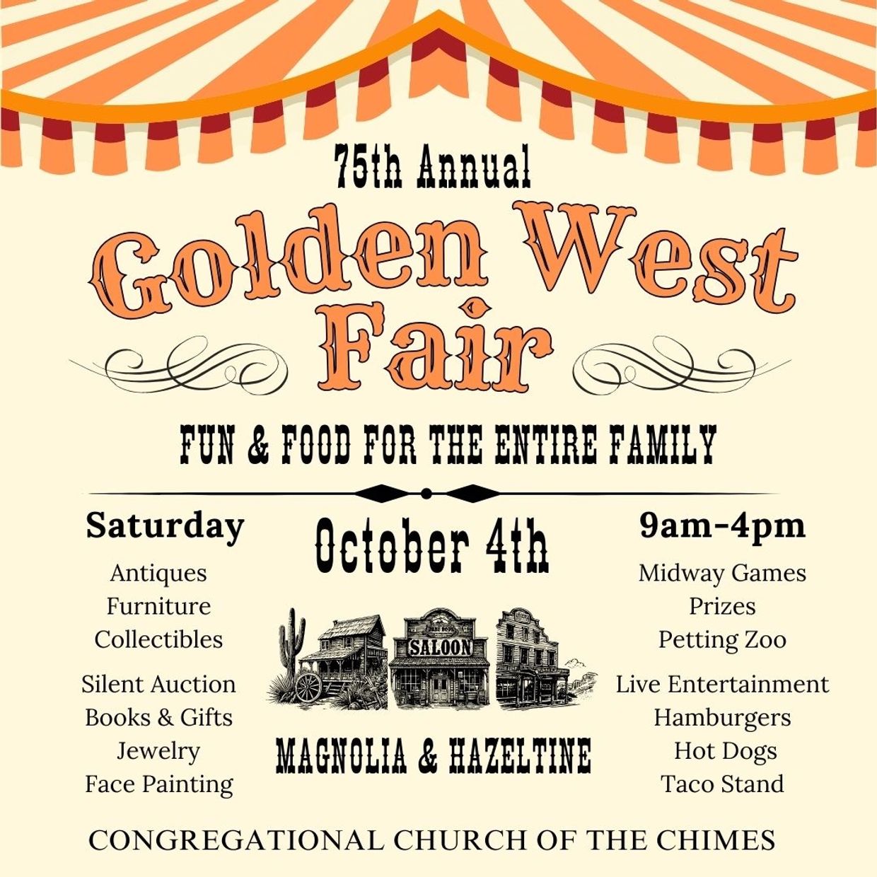 The Golden West Fair is a Sherman Oaks family tradition! For 75 years, the Church of the Chimes has opened its doors to the community for a day of family fun offering a wide range of activities for everyone to enjoy, from thrilling games and delicious food to unique offerings. It's a day filled with fun, family, and fantastic memories.